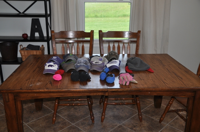 Isn’t that awesome?! We reduced hats and gloves significantly! And I think my husband thought it was much easier to narrow down his hats after seeing them all spread out on the table 🙂