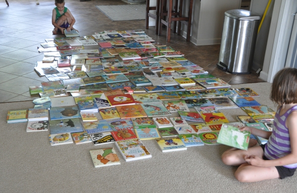 I recruited the kids to help me with the next category: children’s books! This is all of them…